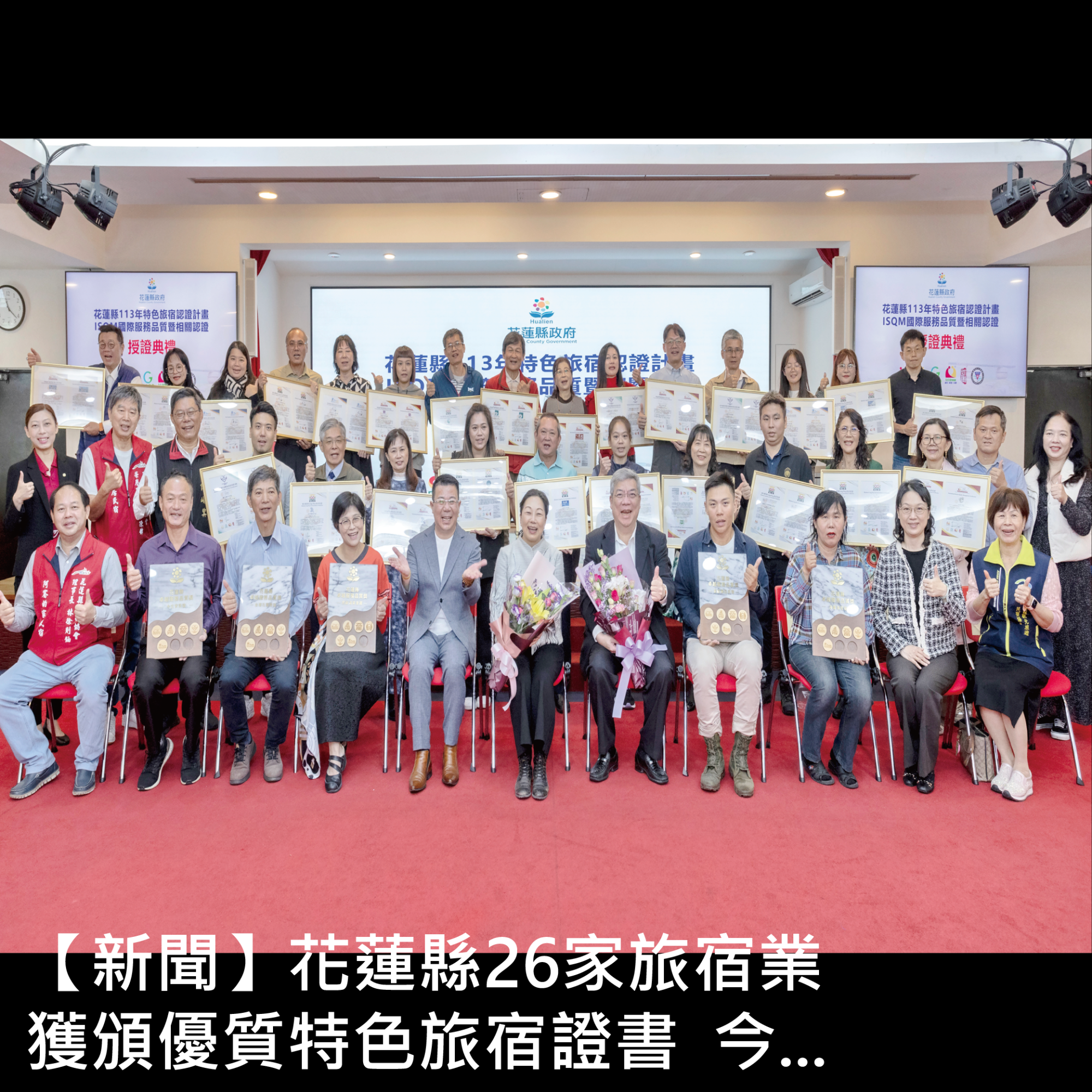 【2024-12-18】【新聞】花蓮縣26家旅宿業獲頒優質特色旅宿證書 今日授證